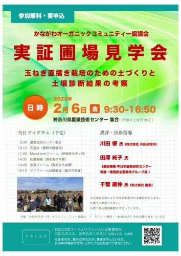 2月6日(金)9:30〜 かながわオーガニックコミュニティー協議会実証圃場見学会 〜玉ねぎ直播き栽培のための土づくりと、土壌診断結果の考察〜